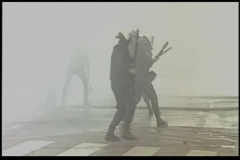 Lino não tem coragem de ser entrevistado e deixa passar a sua vez ao ser chamado. Talvez, naquele momento, ele tenha vislumbrado a lógica ilusionista da suposta empregabilidade. Teria ele se recusado a cumprir mais uma farsa? Farsa por farsa, Santa, ao visitar o estaleiro abandonado, conta, mais uma vez, uma fantasia para Lazarito, o vigia. Diz que os proprietários vão sortear os lotes do ex-estaleiro para os trabalhadores. É o “socialismo fantástico” de Santa. Ele fala com firmeza. O gesto final é o batismo imaginário, com uma garrafa de cerveja, de uma navio abandonado. Ao batiza-lo, Santa reafirma, no plano do imaginário, um território do sonho, o sonho de uma subjetividade que resiste. Na verdade, a quebra da luminária e o batismo do navio abandonado por Santa expõe pequenos gestos pré-politicos desta subjetividade contingente que tenta sobreviver como pessoa humana. Aliás, ao perder a noção de tempo, os desempregados tendem a expressar uma forma de desefetivação. Homens e mulheres desempregados são indivíduos humano-pessoais afetados de negação. No filme, por exemplo, é Santa quem sempre se interroga: “que dia é hoje?”. E, aliás, todo dia é segunda-feira ao sol. Um detalhe: o humor do personagem Serguei, o de ©Giovanni Alves (2005) Clique Aqui para visualizar abertura em flash (ATENÇÃO: Esta análise de filme é parte do Projeto de Extensão Tela Crítica 2005)